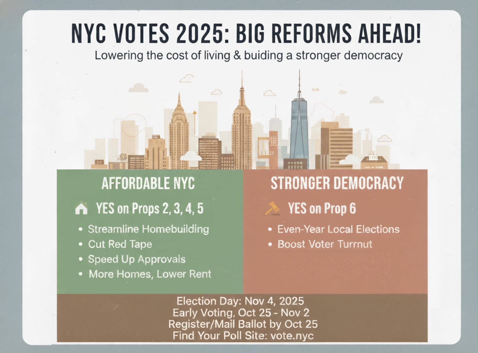This November, some exciting ballot propositions are giving New Yorkers a rare chance to directly lower the cost of living and strengthen our city’s democracy.